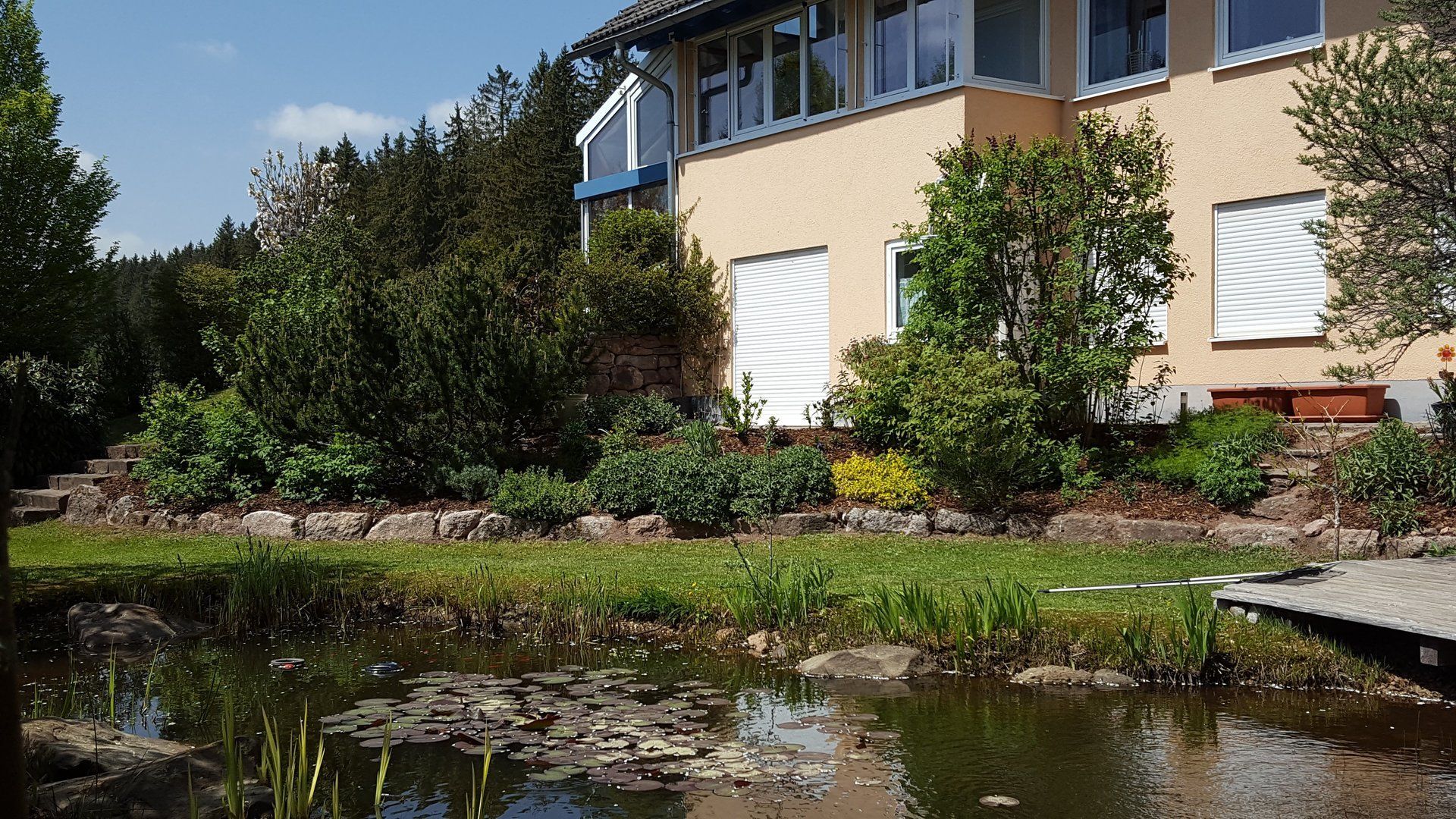 Gartenteich mit Holzsteg, ...